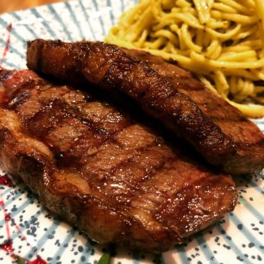 Medalhão de filé mignon (200g) grelhado na brasa.